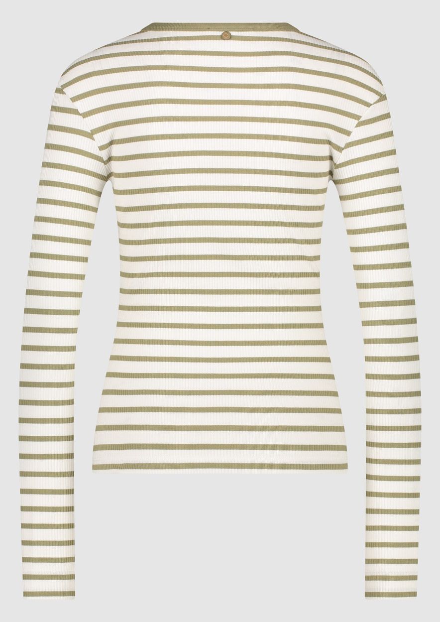 Katoenen dames top met een aangesloten fit in een groen-wit streeppatroon. De Veronique top is gemaakt van zacht geribbeld katoen. Beschikbaar in meerdere kleuren.