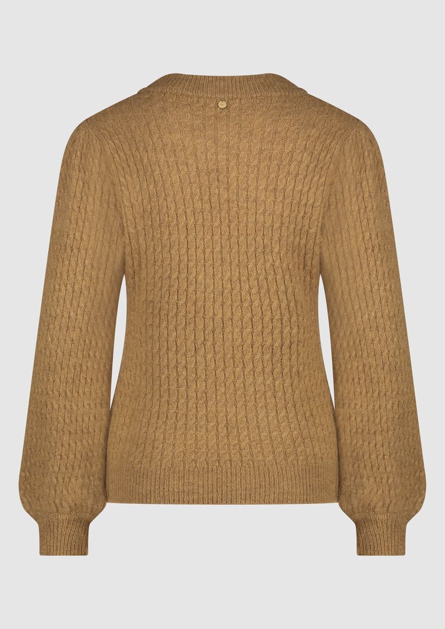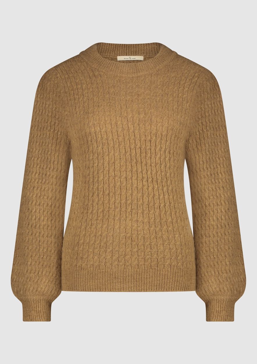 Fijn gebreide kabeltrui gemaakt van een zachte blend in een lichtbruine tint. De Blake knit heeft een regular fit met een ronde hals en ribgebreide boorden.
