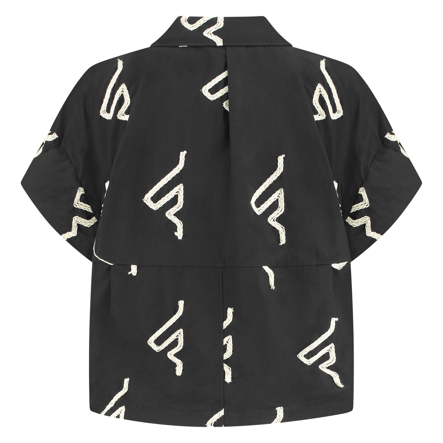 De Catalina top heeft een all- over embroidery print en een casual fit. Verder heeft het korte mouwen met een grote omslag en parelmoer knoopsluiting.