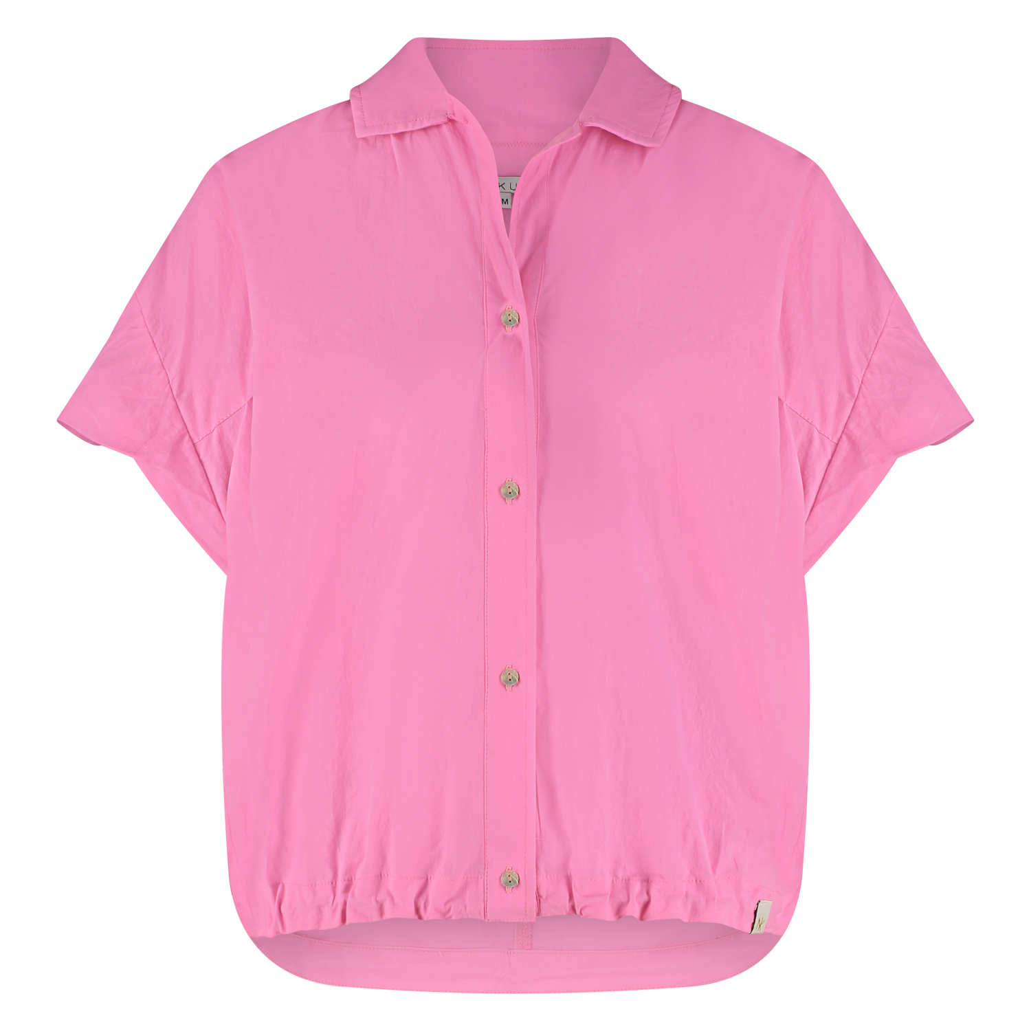 De Catalina top in een mooie roze kleur heeft een casual fit. Verder heeft het korte mouwen met een grote omslag en parelmoer knoopsluiting.
