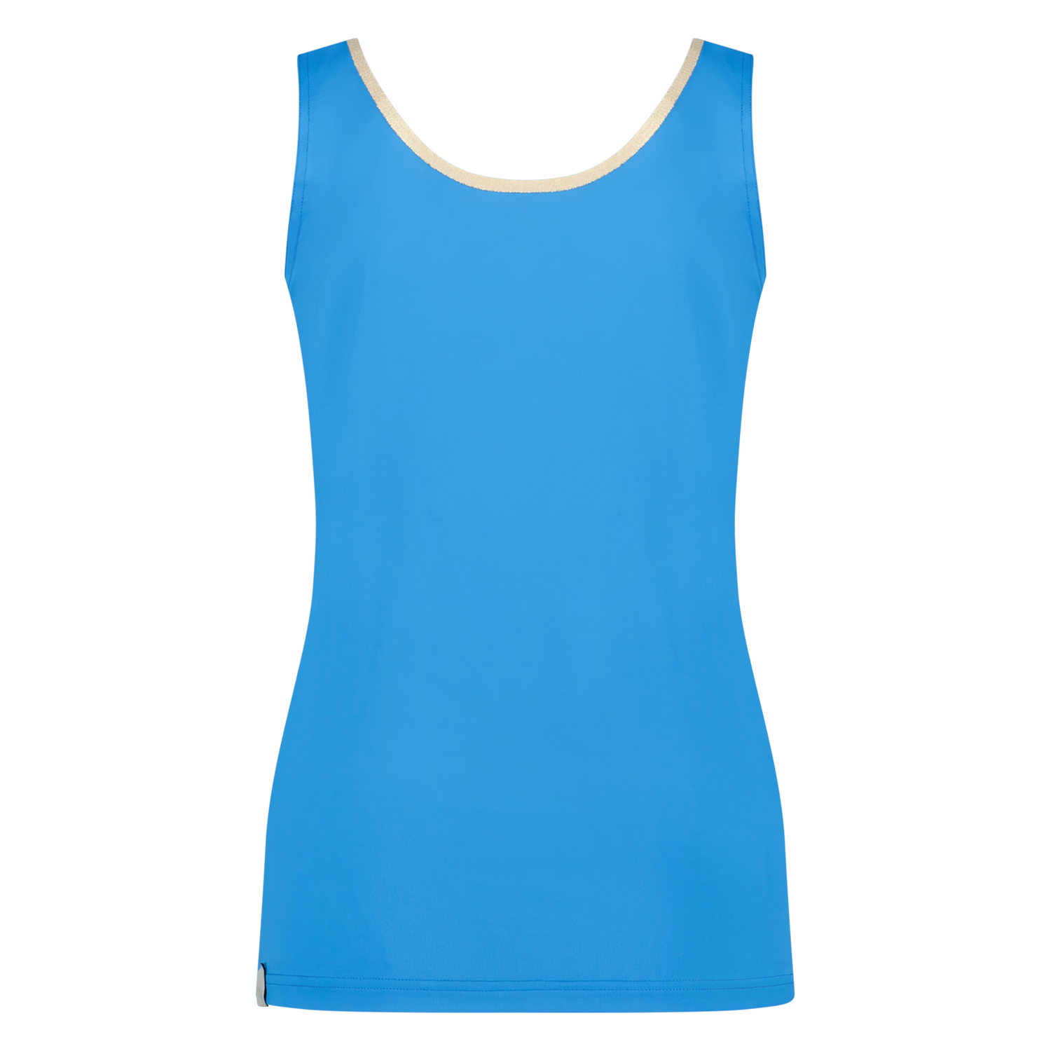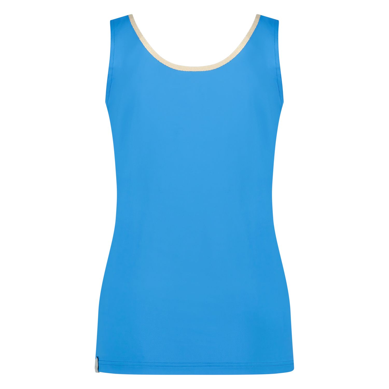 De Juba top heeft een ronde hals met brede bandjes en een subtiel gouden lurex randje. Verder heeft de top een aangesloten pasvorm en is de top gemaakt van polyamide en elastaan.
