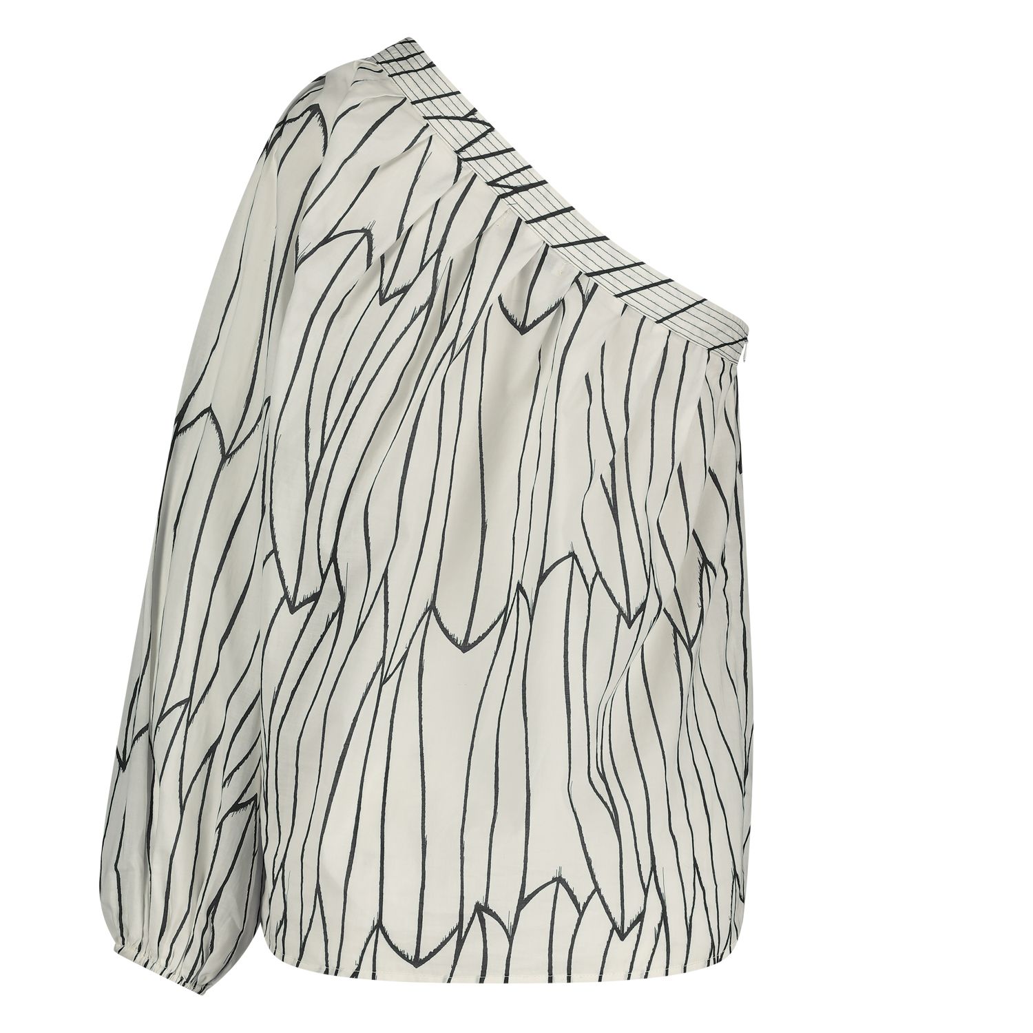 De Rachel top is een van onze nieuwste top! De Rachel is een one shoulder top met een all-over print zwarte wit print. Verder heeft de top één pofmouw en een ronde afwerking aan de onderkant.