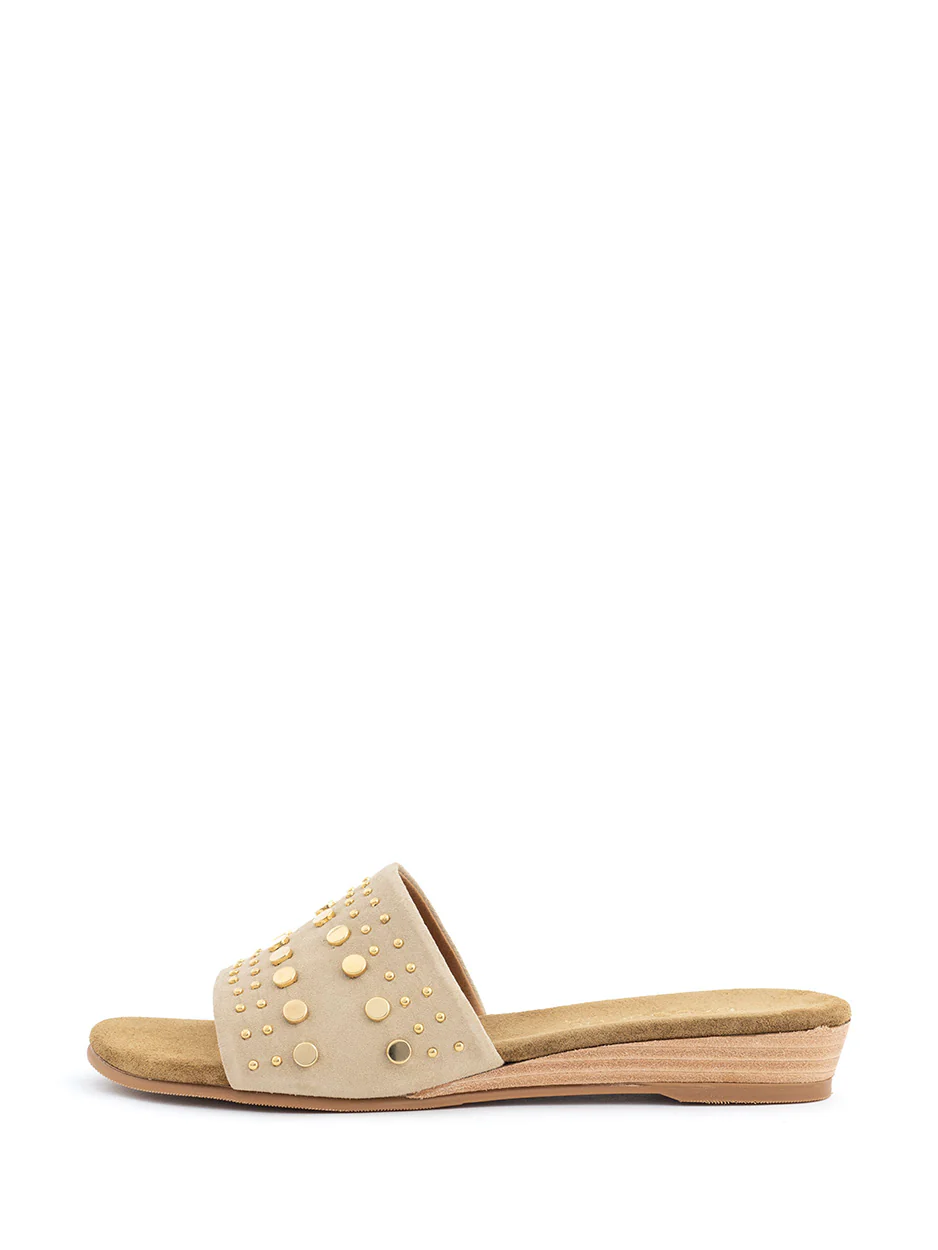 Voeg een flinke dosis stijl toe aan iedere look met deze slippers die worden gekenmerkt door de gouden studs. De slippers met brede band zijn handgemaakt in mooie Italiaanse materalen en kwaliteit die zich volledig naar je voet zal vormen.