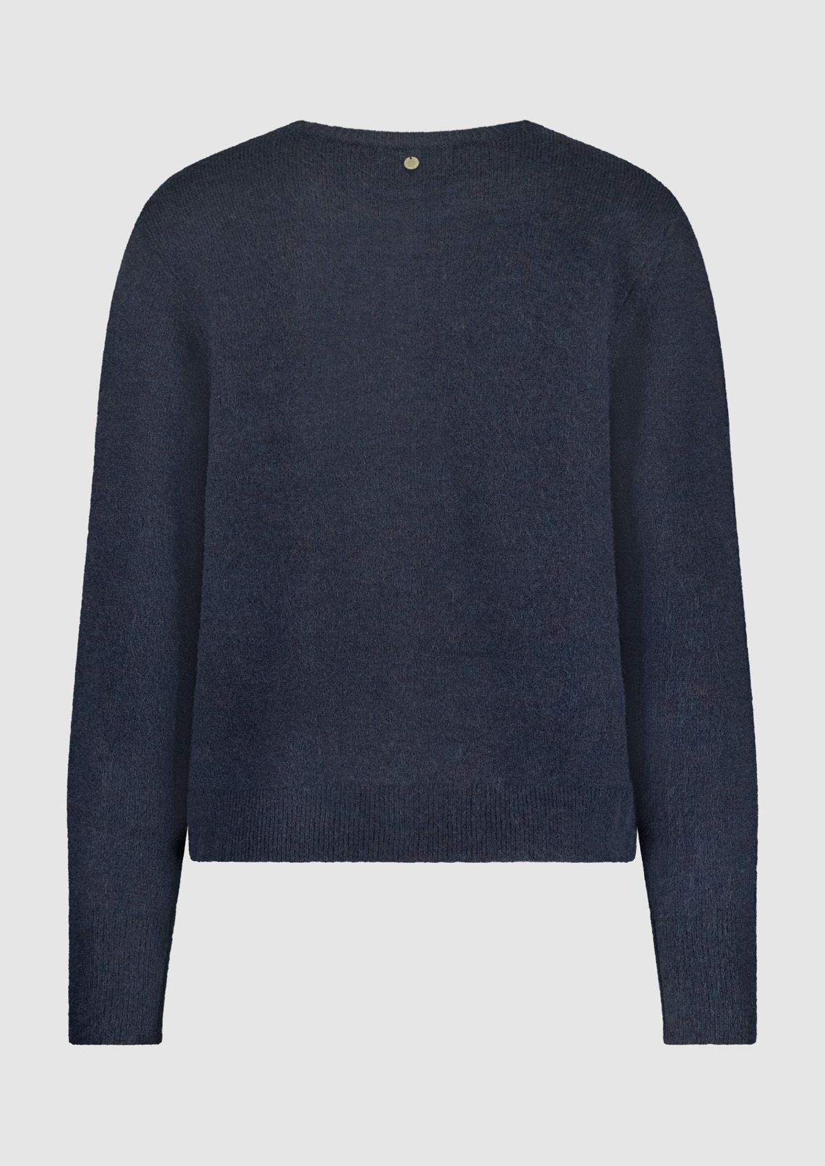 Een gebreid damesvest met sluitknopen langs de voorzijde, uitgevoerd in een donkerblauwe tint. De Andy cardigan heeft regular fit en een ronde hals. Het vest heeft een dik boord aan de onderkant en mouwuiteinden. Beschikbaar in meerdere kleuren.