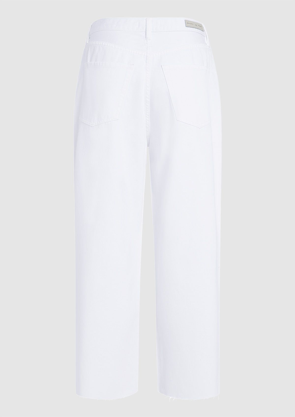 Wijde cropped dames jeans met een middelhoge taille gemaakt van stretch denim. De Boston is uitgevoerd in een witte wassing en heeft gerafelde broekspijpen.