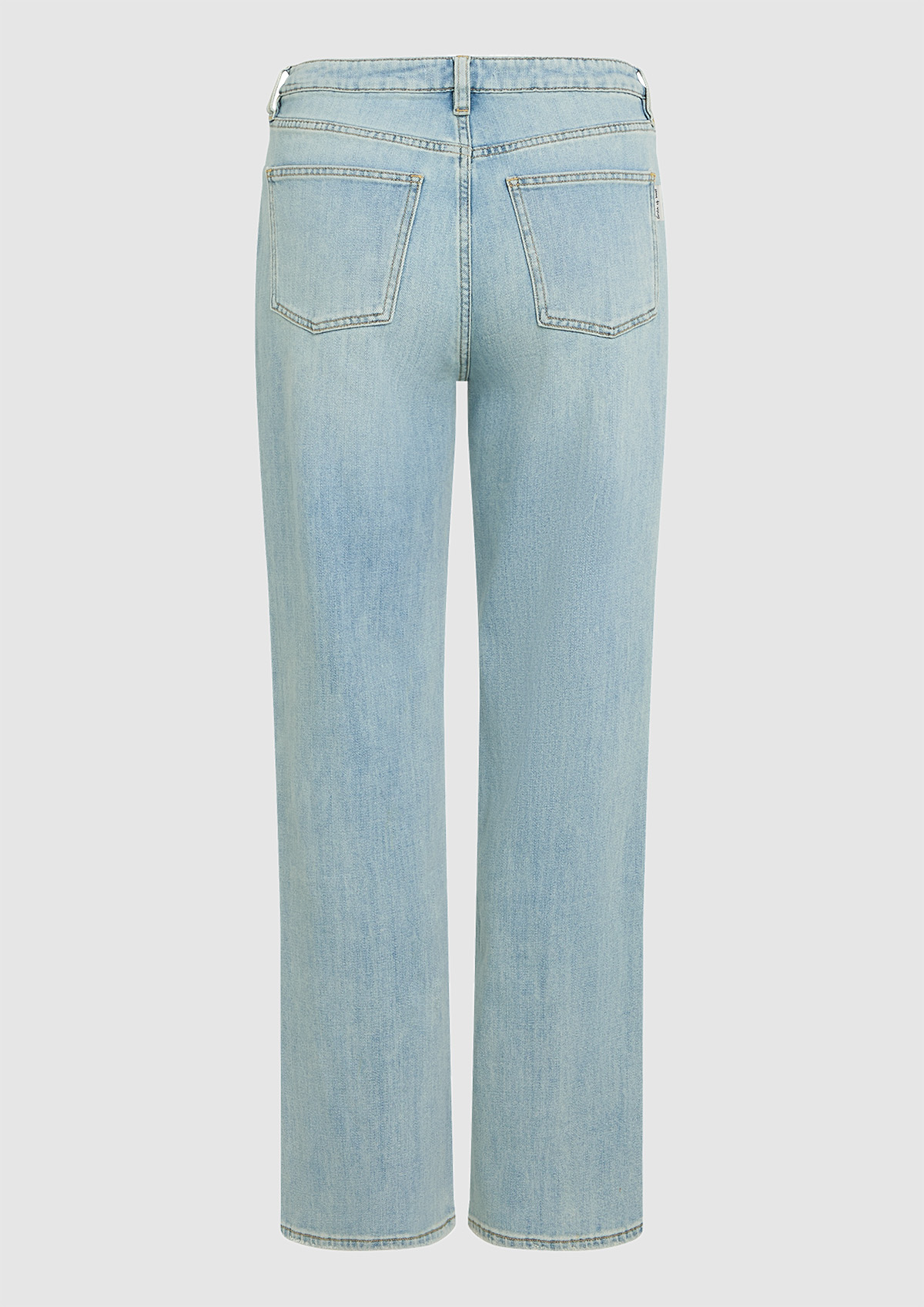 De Cathy is onze straight leg denim met een mid waist. Deze jeans heeft een 5-pocket design en is uitgevoerd in een licht blauwe wassing.
