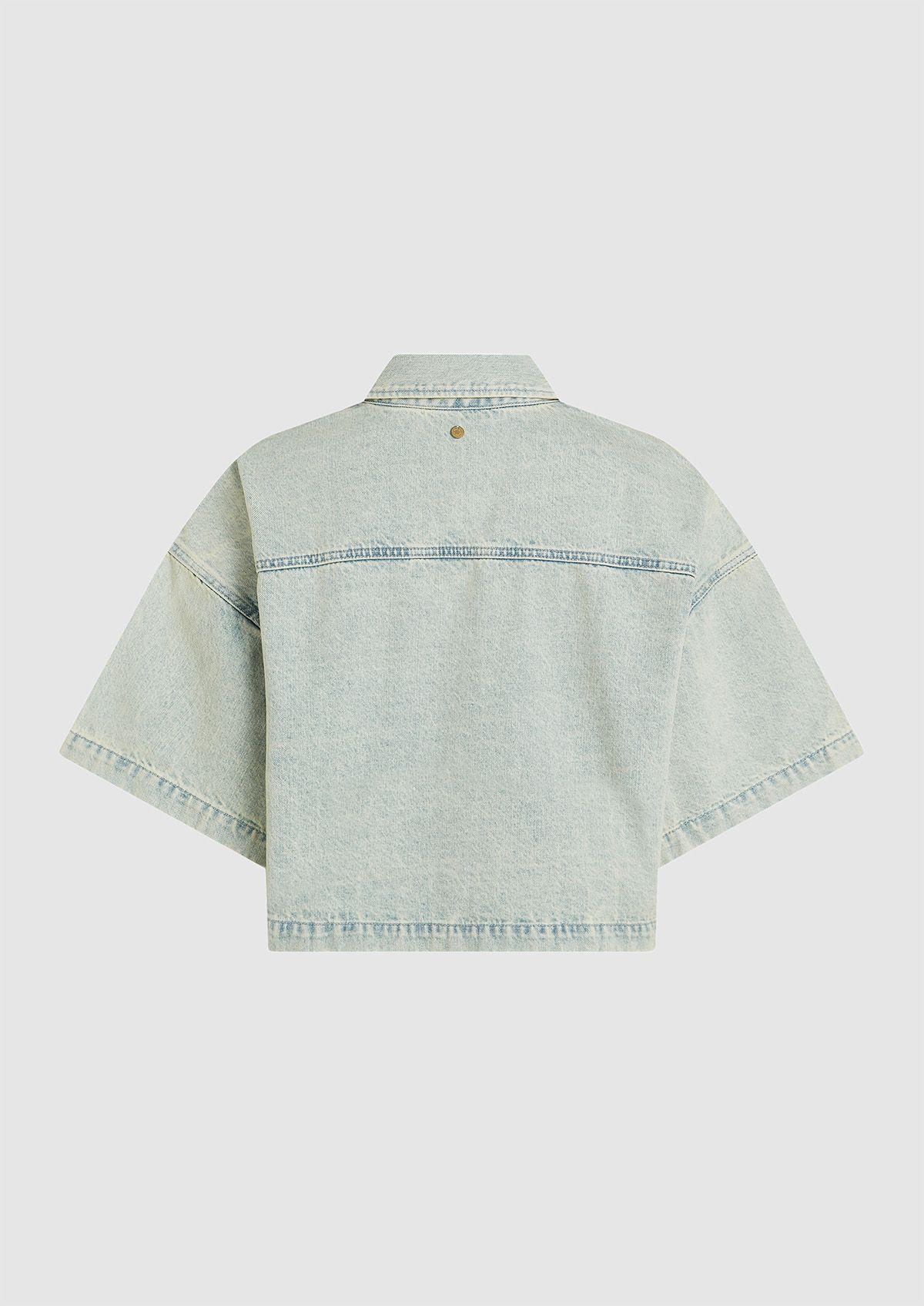 Lichtblauwe denim blouse met een heftige vintage fade en een boxy oversized fit. De Denver blouse heeft dropshoulders met driekwart mouwen en een knoopsluiting. Beschikbaar in meerdere kleuren.