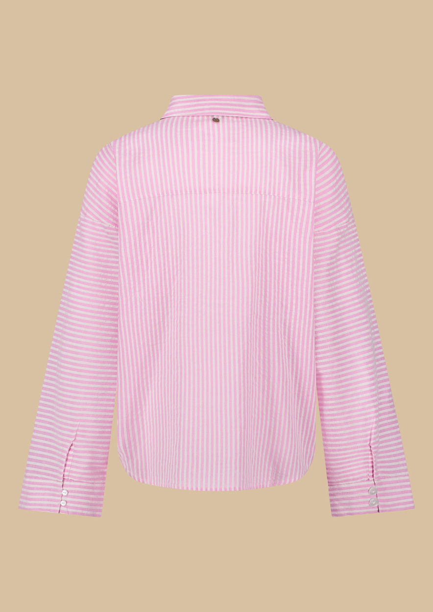 Drop shoulder blouse met een regular fit, uitgevoerd in het roze met wit gestreept. De Dionne blouse is boxy, heeft een knoopsluiting en is gemaakt van luchtig katoen. Beschikbaar in meerdere kleuren.