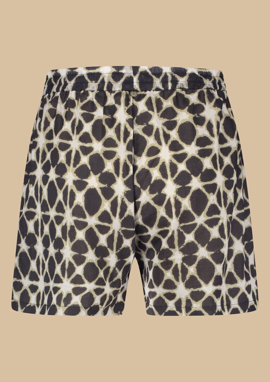Luchtige short voor dames met een zwarte seizoensprint. De Lotte short heeft een elastische tailleband met steekzakken. Beschikbaar in meerdere prints.