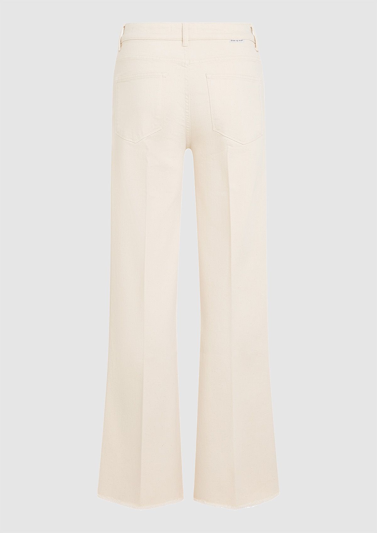 De Marlow is onze mid waist denim met wijde, licht uitlopende broekspijpen en een gerafelde onderkant. Deze jeans is gemaakt van stretch katoen en heeft een lichte wassing.