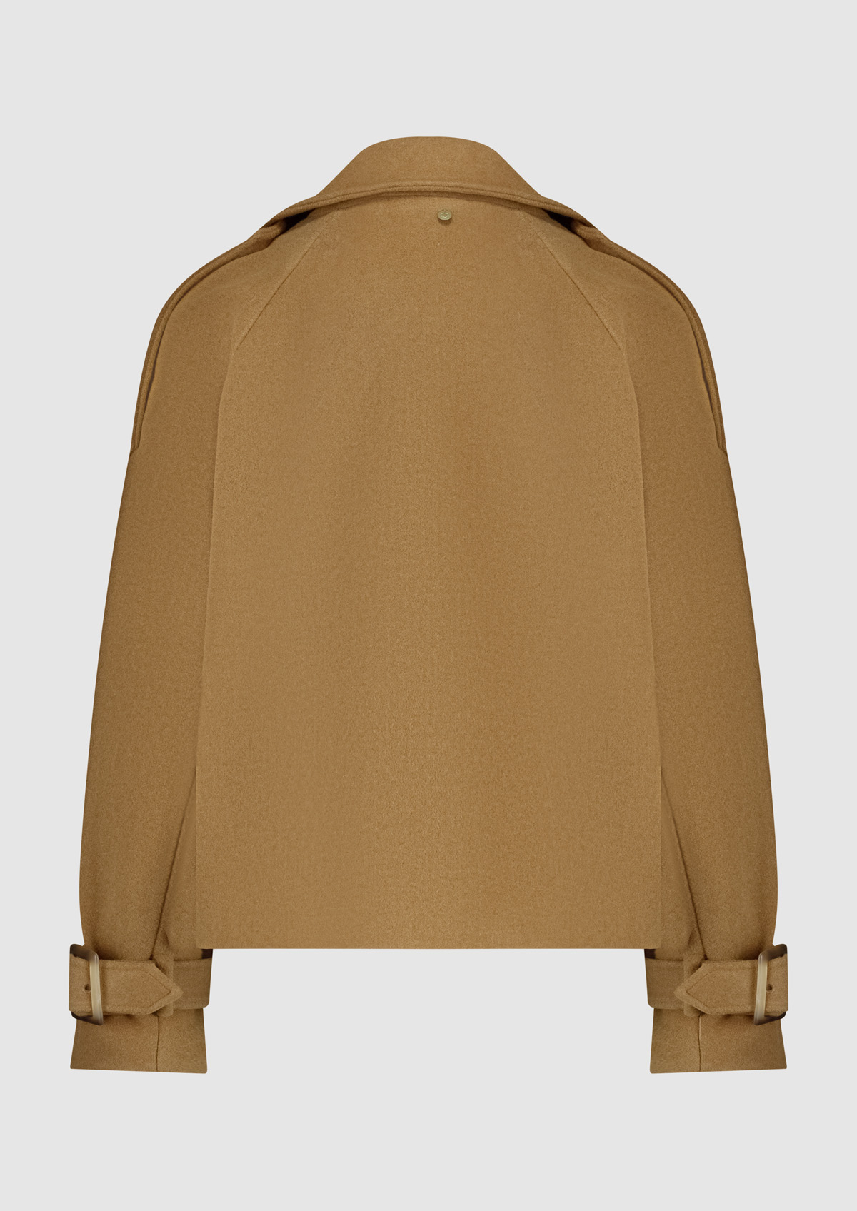 Bruin dames jack gemaakt van een warme wol blend met een voering van glad polyester. De Roxy jacket heeft een boxy fit met hangende schouders, een knoopsluiting en verstelbare gespen op de mouwen.