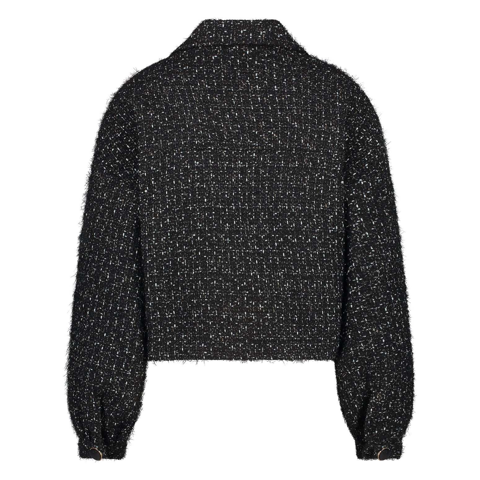 Het Harmony jacket is een kort jasje met drie knopen aan de voorkant en twee handige borstzakken. De subtiele witte accenten geven het een eigentijdse uitstraling, en het is afgewerkt met twee knopen bij de mouwen voor extra detail.