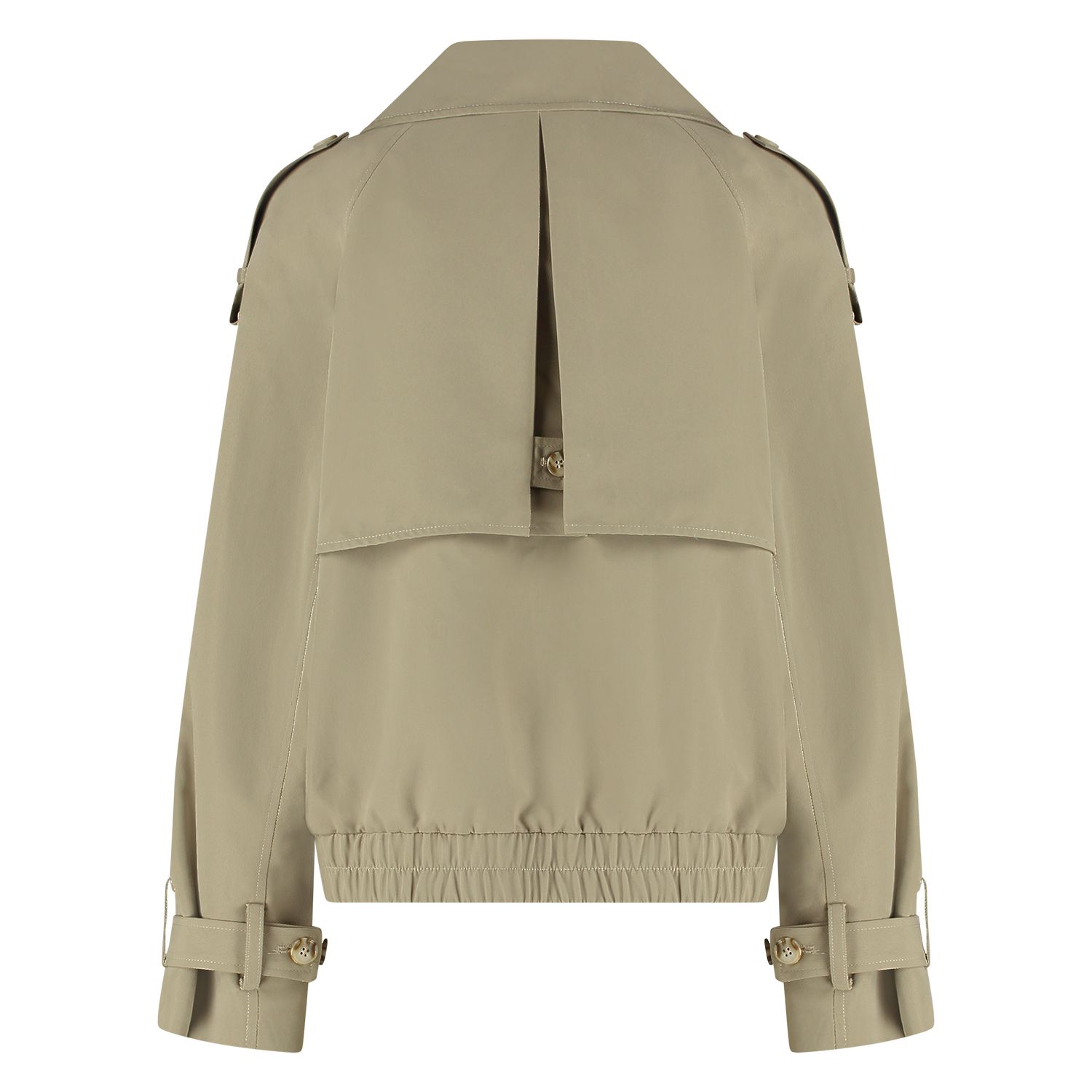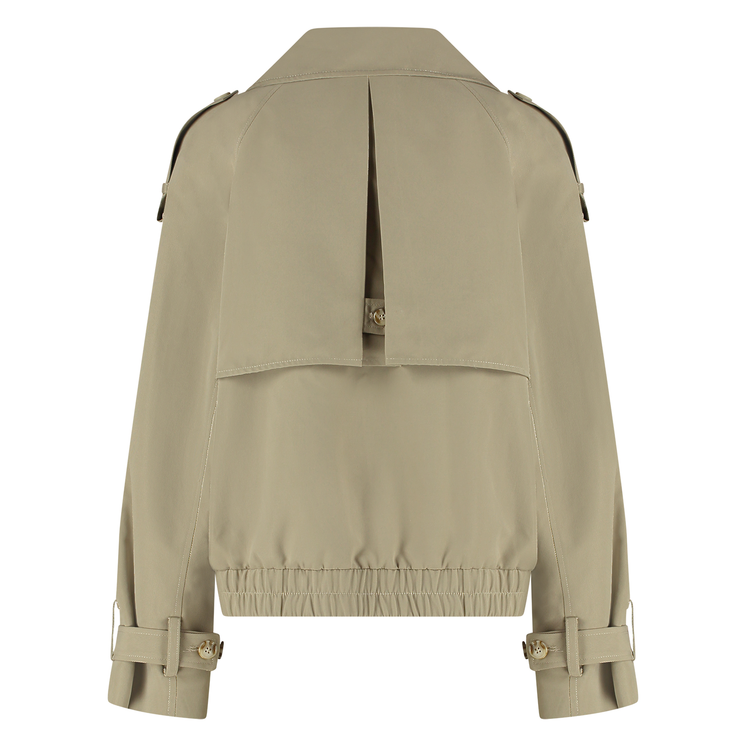 De Innsbruck jacket is een korte trenchcoat met elastiek aan de onderkant voor comfort. Deze jas heeft 2 zakken, een open kraag en sluit met knopen. Bij de polsen zijn gespen toegevoegd, waarmee je je look kunt verfijnen.