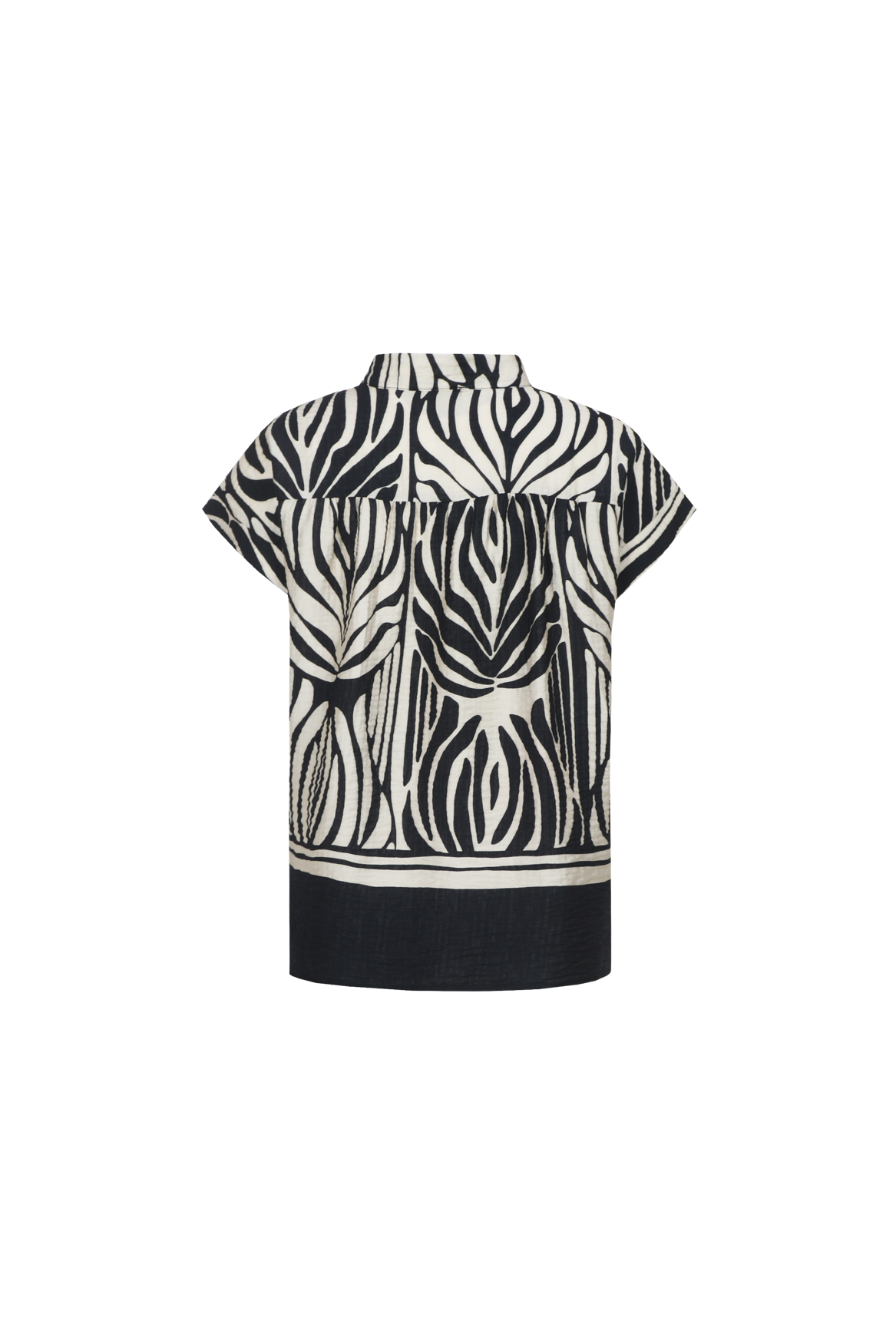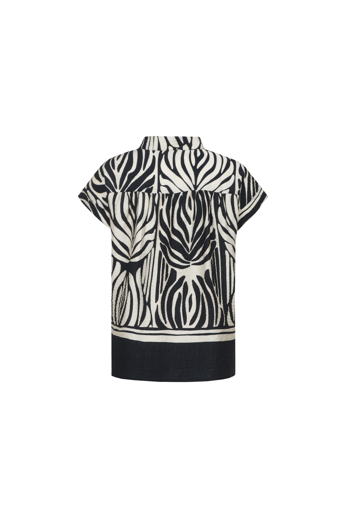 De Havine top is een echte blikvanger met een krachtig grafisch dessin. Het model heeft een subtiele opstaande hals en korte mouwen, wat zorgt voor een moderne en elegante uitstraling. De soepelvallende stof draagt luchtig en voelt comfortabel aan op de huid. Perfect om als statement piece te combineren met een bijpassende broek of juist rustig te stylen met een effen item.