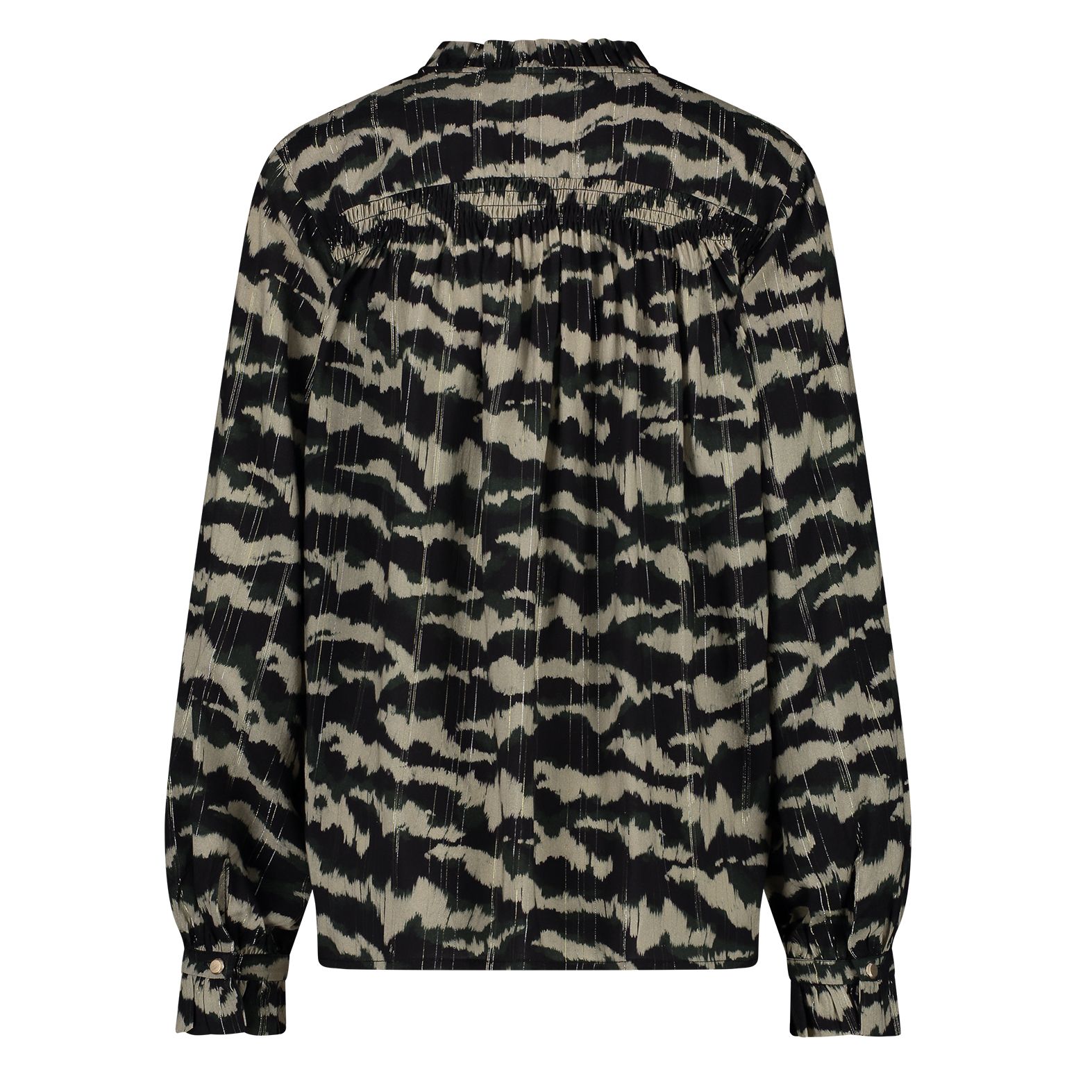 De Jenna Blouse heeft frills bij de hals en een glinsterend patroon dat subtiel is verweven. De knoopsluiting voegt een klassiek accent toe, terwijl de ruches bij de schouders en aan de onderkant van de mouwen een speels en vrouwelijk element toevoegen.