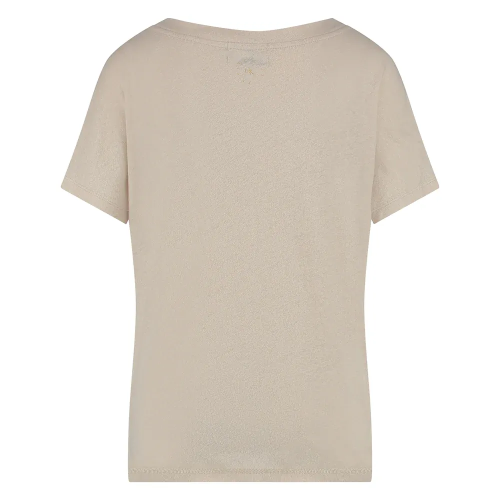 Het Sosa t-shirt heeft korte mouwen met een V hals. Het t-shirt is gemaakt van katoen en linnen.