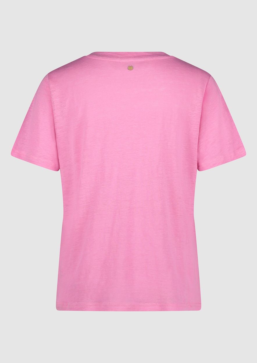 Soepelvallend linnen t-shirt in een roze kleur.. De Mila tee heeft een regular fit met een
