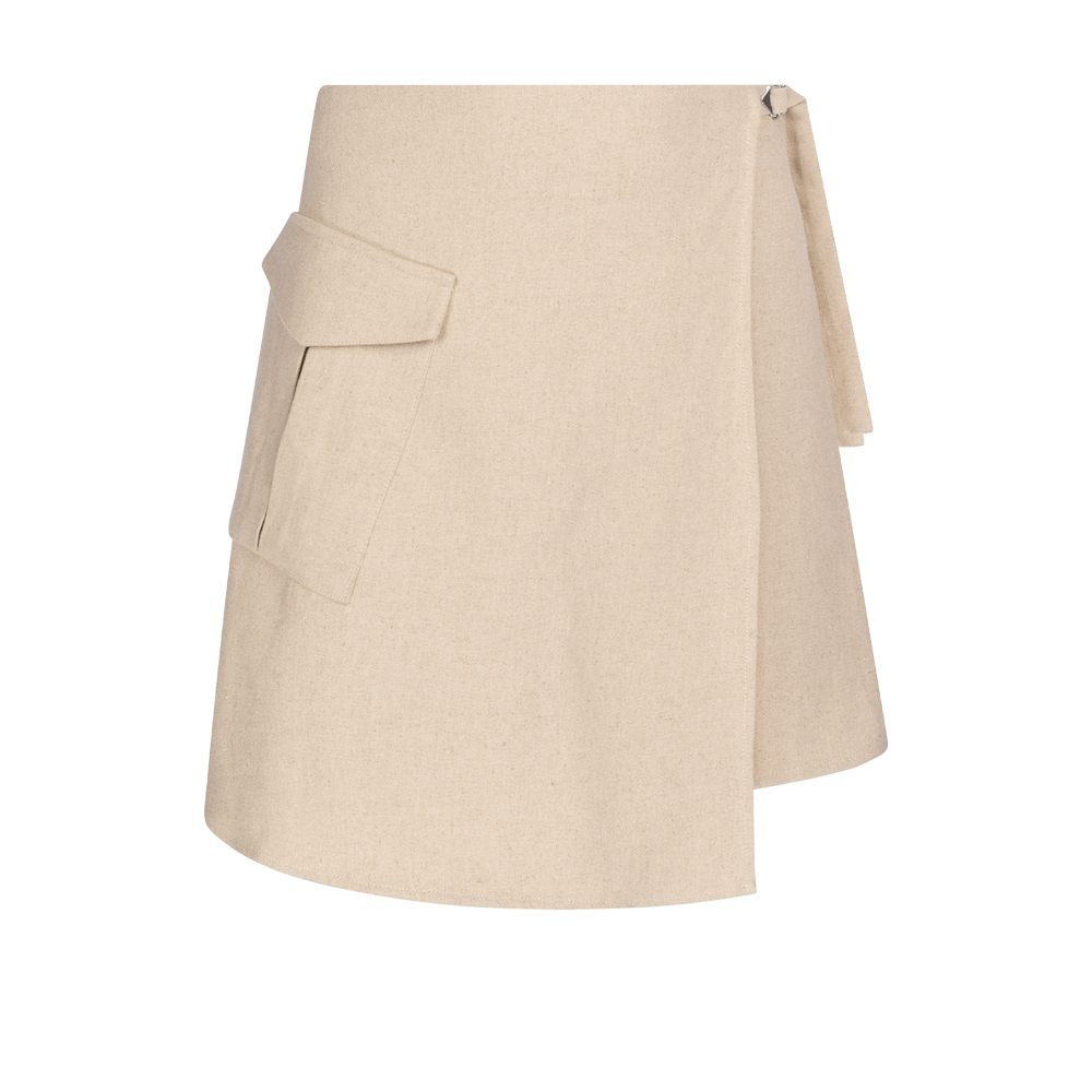 Maak kennis met de Gwen Skort: een luxe linnenmix, mini-lengte ontwerp met een stijlvolle overlap en gespsluiting. Met cargozakken voor extra flair en functionaliteit, het is de perfecte mix van chic en praktisch voor elke gelegenheid.