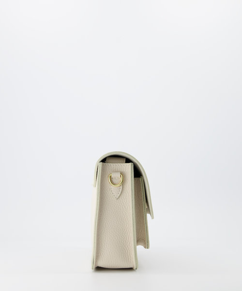 Fenna is een handige crossbody tas gemaakt van 100% genuine leer in de kleur Ecru. De tas heeft goudkleurige metalen details. De tas heeft een kleiner buitenvak en een ruim binnenvak. De Fenna crossbody tas heeft een brede verstelbare band.