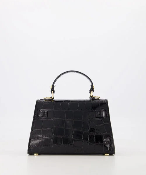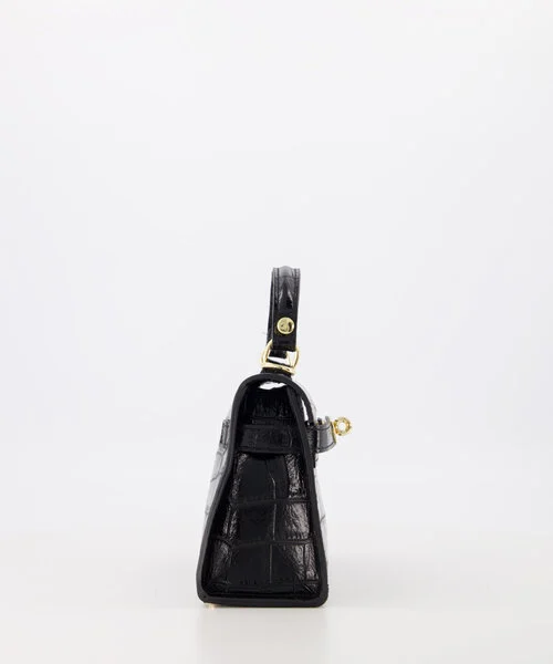 De handtas Grace is gemaakt van echt leer in een croco uitvoering met een lak accent. De tas heeft op de voorkant een draaisluiting en is afgewerkt met goudkleurige hardware. Dankzij de afneembare en verstelbare hengsel kan de Grace tas ook als crossbody gedragen worden. De tas heeft een hoofdcompartiment met aan de binnenzijde een ritsvakje.