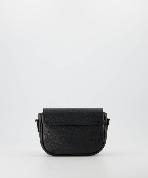 Leren crossbodytas met een magneetsluiting aan de voorzijde en een ritssluiting aan de bovenzijde. Aan de binnenzijde zit een vakje met ritssluiting. Het hengsel is afneembaar en verstelbaar.