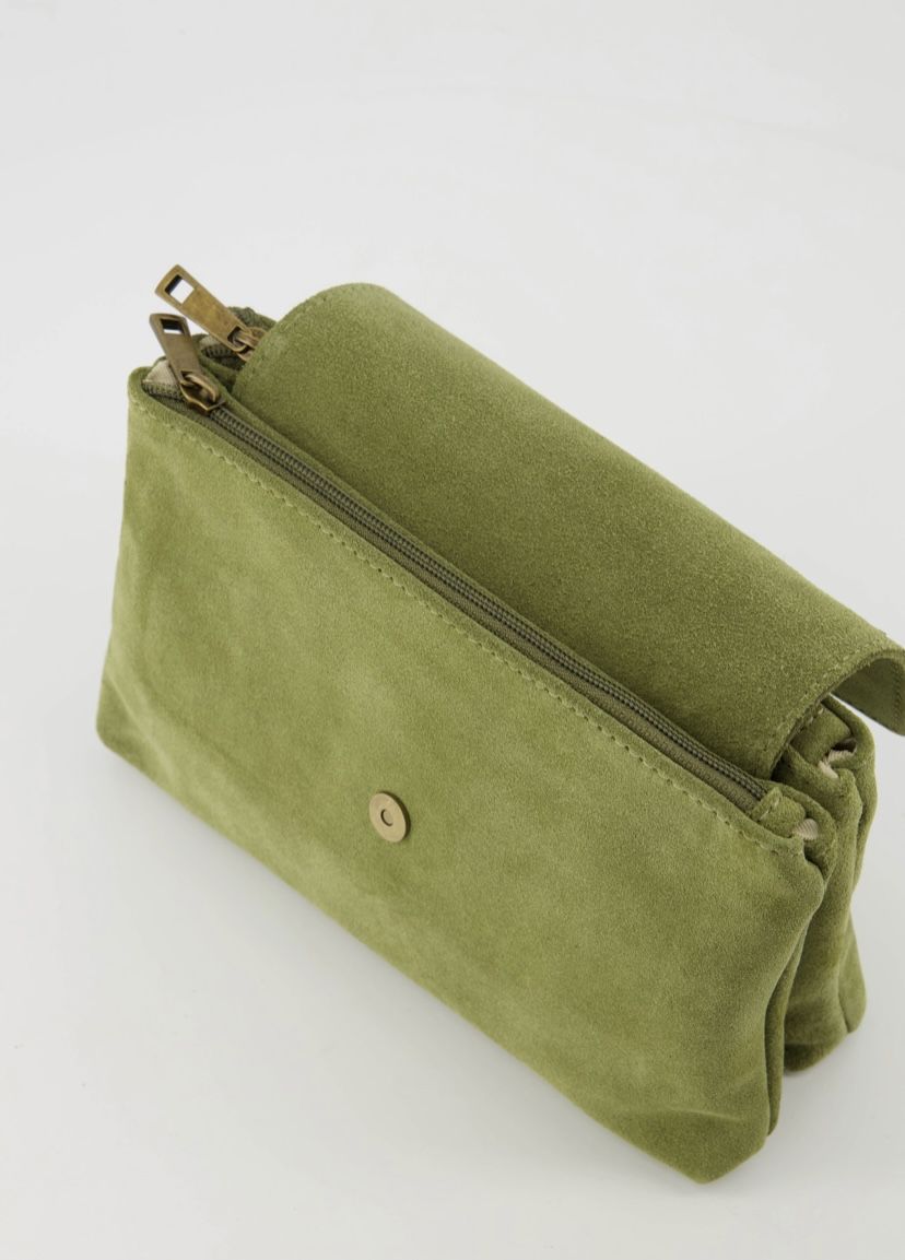 De crossbody tas Bodil is gemaakt van suede leer. Deze trendy tas heeft 3 vakken, waarvan 2 afsluitbaar zijn met een rits en 1 daarvan heeft een flap. De crossbody tas heeft een lang verstelbaar hengsel.