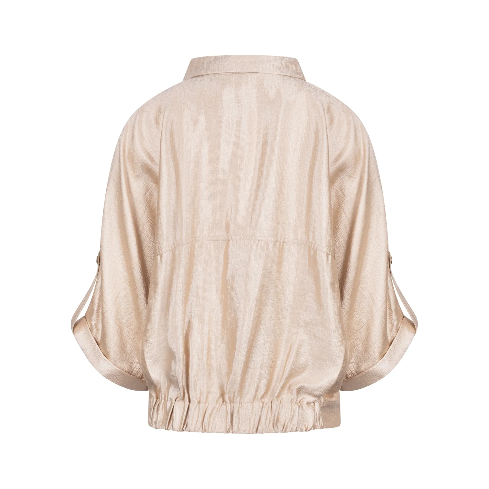 Met een warme gouden tint en een glans is deze blouse een echte blikvanger in je garderobe. De Nelly blouse gold is ruimvallend en kan op meerdere manieren gedragen worden: dicht als klassieke blouse of open als een licht jasje, gecombineerd met een Steffie singlet eronder voor een moderne twist. Gemaakt van zachte viscose voelt de blouse soepel aan en valt elegant om het lichaam.