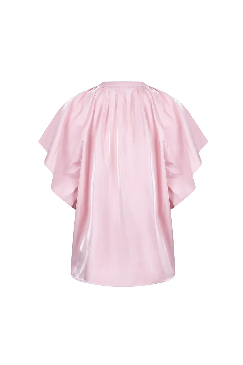 De Taylor top shiny van Nukus heeft een op maat gemaakte pasvorm met een elegante V-hals en wijdvallende mouwen die soepel mee bewegen. Het glanzende materiaal geeft de top een luxe uitstraling en maakt hem ideaal voor een opvallende voorjaars- of zomerse outfit. Perfect te combineren met de Rubi pants shiny voor een stijlvolle matching set, of draag hem met een lichte broek of rok voor een subtielere look. Dankzij het comfortabele model draag je de top de hele dag met gemak en stijl.